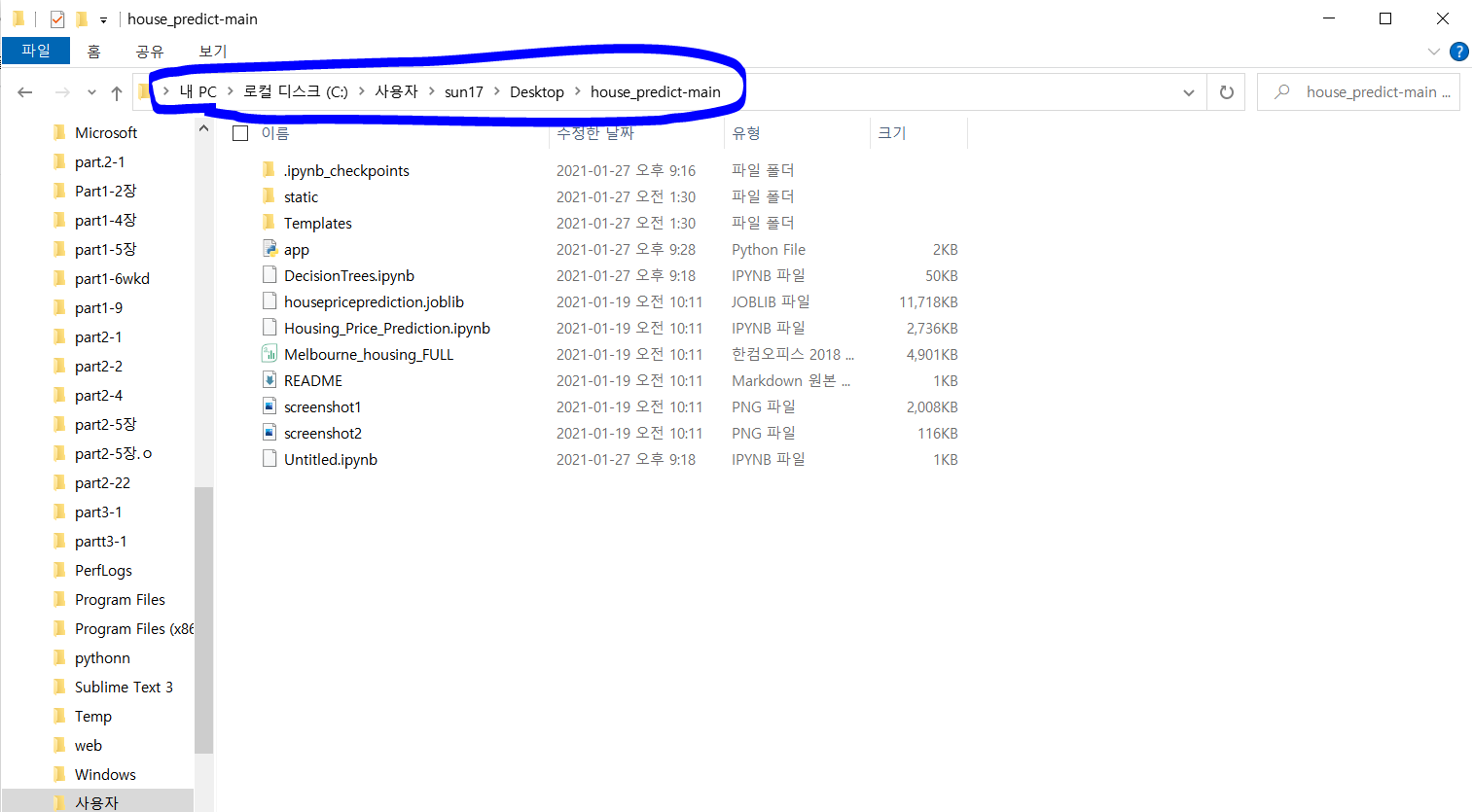 파란색 부분을 눌러주면 경로가 잘 나온다 ! 그 경로를 복사하고 마지막으로 \원하는파일 이것만 붙혀주면 완성 !