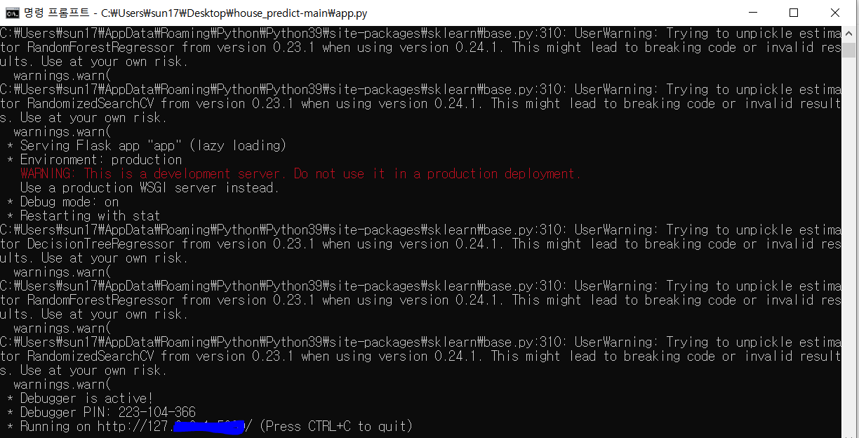 그리고 내가 원하는 app.py를 실행한 결과