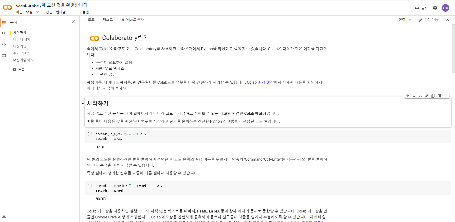 - 많은 공모전에서 주피터 노트북보다 코랩을 더 많이 사용