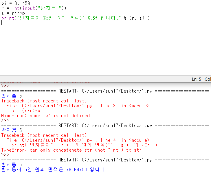 (예) 사용자에게 반지름을 입력 받아 원의 면적을 계산하는 프로그램