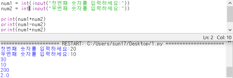 ※ int를 추가하여 정수로 변환해야함 : 변환해 주지 않으면 입력받은 값을 문자로 인식.