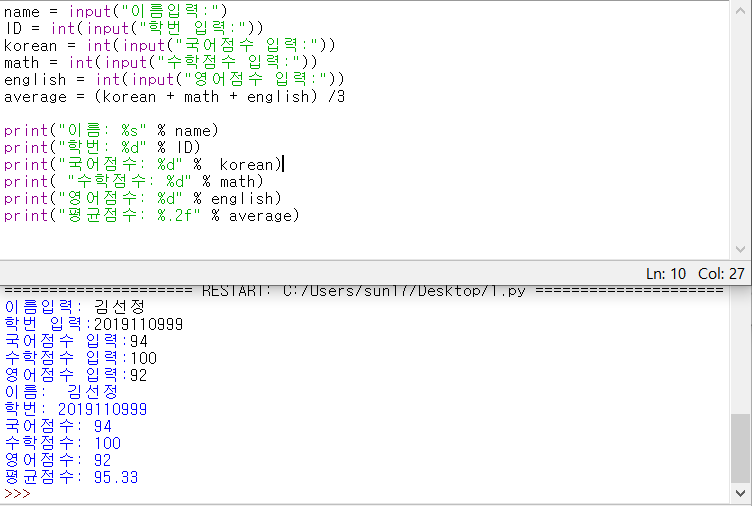 ※ 키보드 입력값은 모두 문자열로 인식하기 때문에 원하는 자료형으로 변경 해줘야 한다.